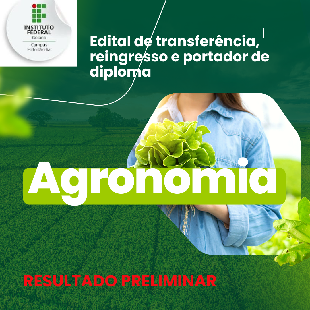 A Comissão Responsável pelo Processo Seletivo para ingresso no Curso Superior Bacharelado em Agronomia do Instituto Federal Goiano Campus Hidrolândia torna pública a convocação para a...