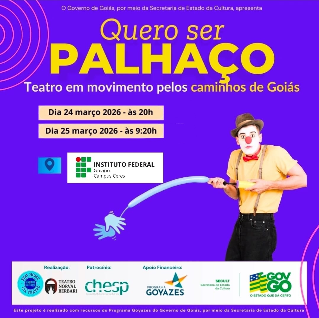 Campus Ceres receberá projeto de teatro nestes dias 24 e 25 de março