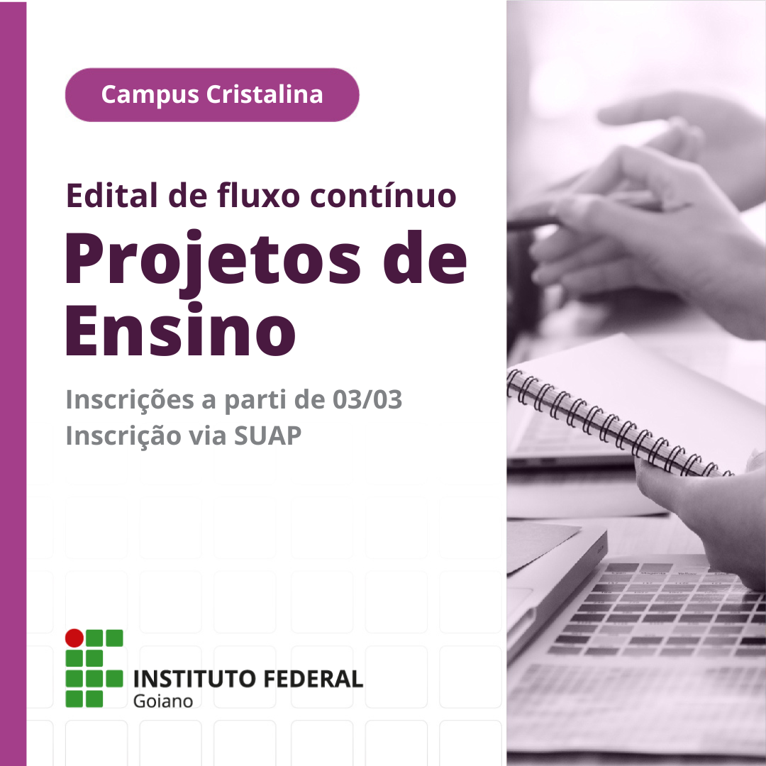O presente Edital destina-se a selecionar Projetos de Ensino para alunos regularmente matriculados em todos os níveis e modalidades de ensino