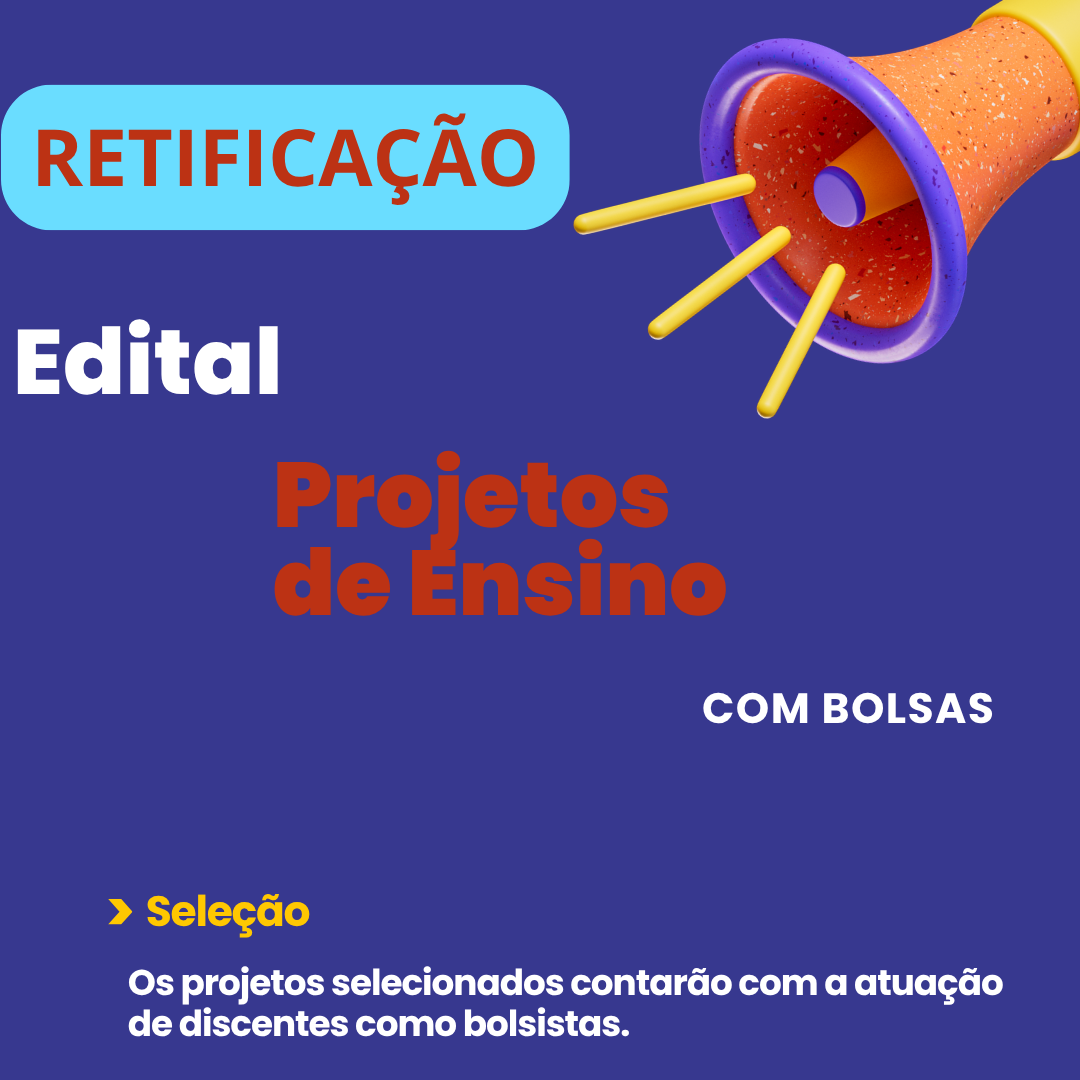 Divulgada retificação de edital nº 06 para submissão de projetos de ensino (com bolsas para discentes)