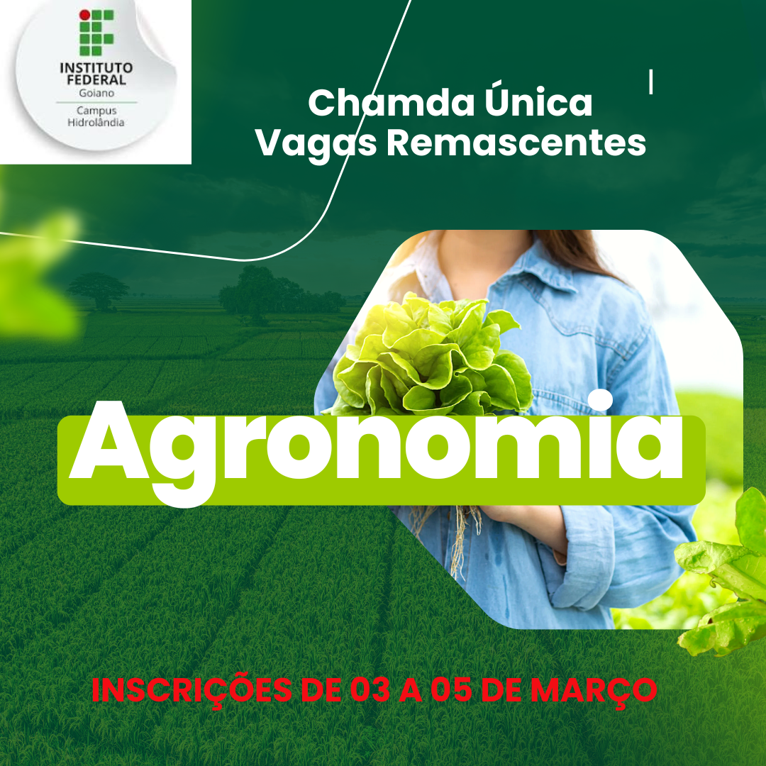 A Semana de Agronomia acontecerá no Campus Hidrolândia, entre os dias 21 e 23 de maio, e está com uma programação repleta de palestras, minicursos e oficinas voltada para os acadêmicos do Bacharelado em Agronomia.