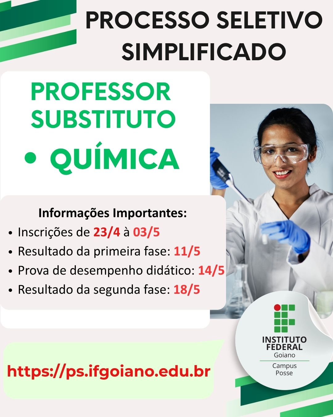 IF Goiano – Campus Posse abre seleção para professor substituto em Química