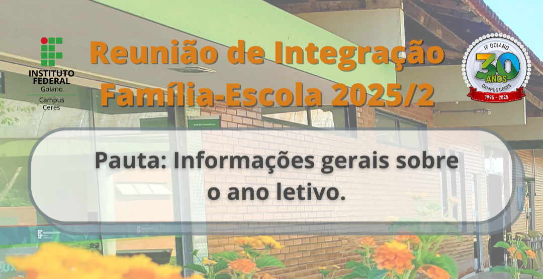 Encontro é destinado a todos os responsáveis de estudantes do Ensino Médio Integrado