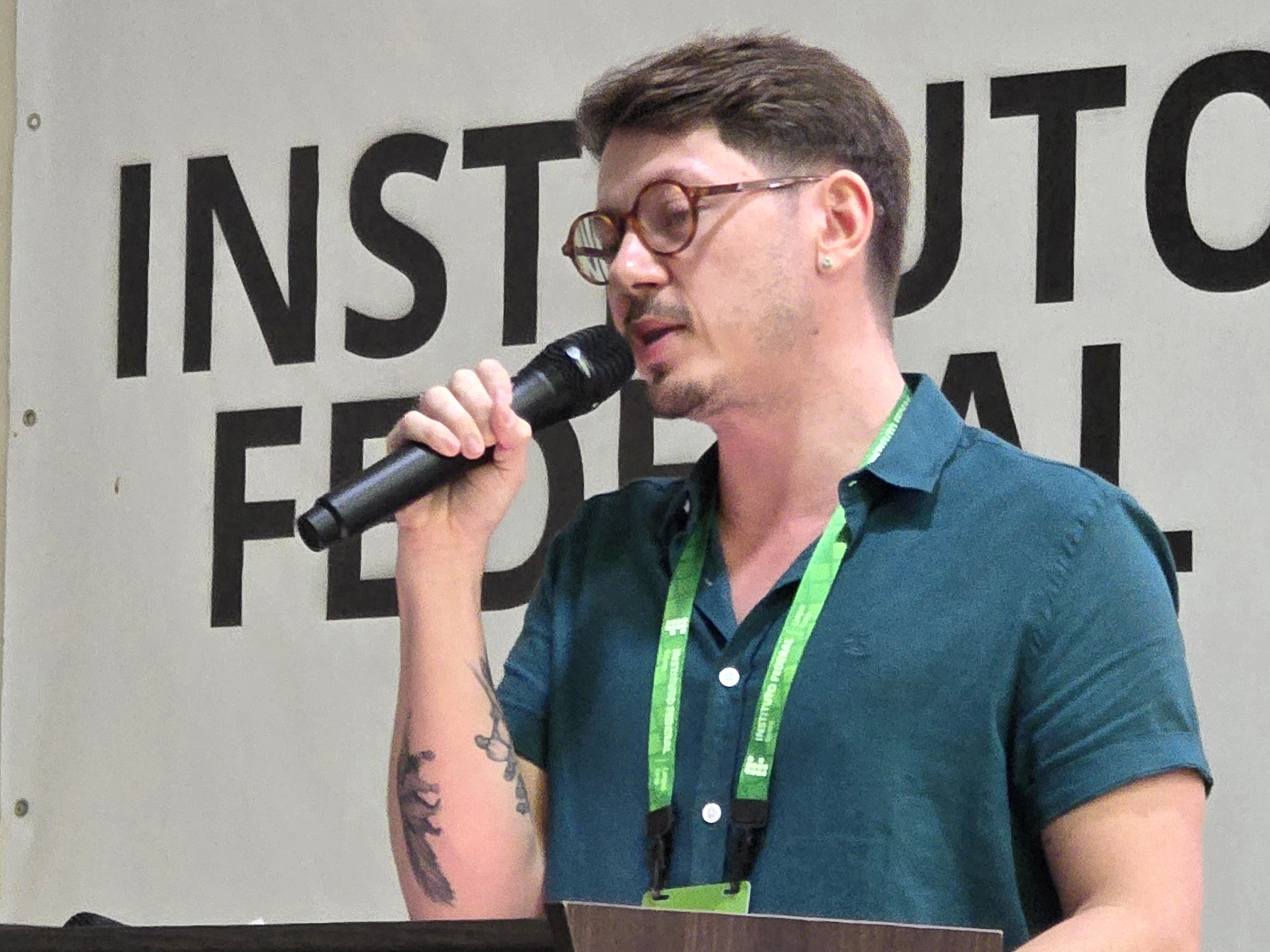 Gustavo Ferreira, presidente da Feira de Ciência e Tecnologia, discursa na solenidade de abertura
