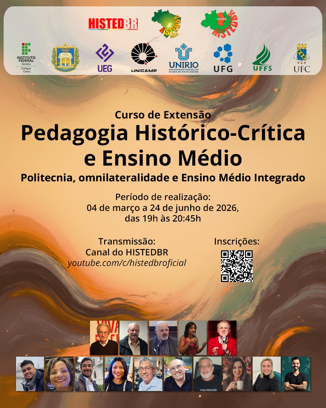 O Campus Ceres do Instituto Federal Goiano (IF Goiano) irá ofertar, em parceria com a Universidade Estadual de Campinas (Unicamp), o curso de extensão Pedagogia Histórico-Crítica e Ensino Médio: Politecnia, Omnilateralidade e Ensino Médio Integrado. As aulas serão sempre virtuais, de 4 de março a 24 de junho, em período noturno. O curso é gratuito.