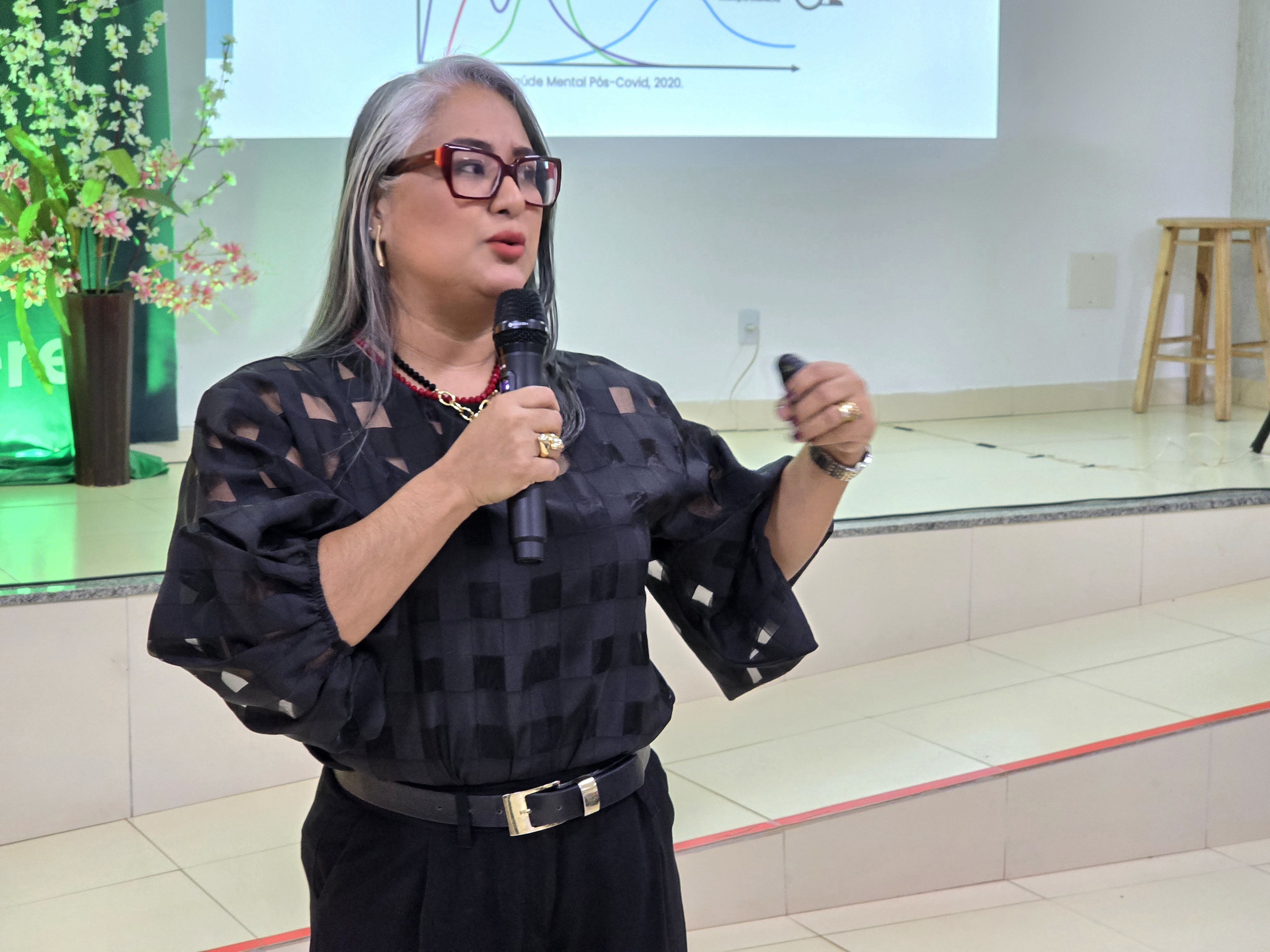 A palestrante convidada foi a doutora em Psicologia Rose Helen Shimabuko. Com sólida atuação na área da Psicologia do Trabalho e Organizacional, membra efetiva do quadro de servidores do Instituto Federal de Goiás, a palestrante apresentou à plateia o preocupante cenário do qual poucos – quase ninguém – escapam, e falou sobre possíveis saídas deste caldeirão tumultuoso em que se tornou o mundo pós-pandêmico.