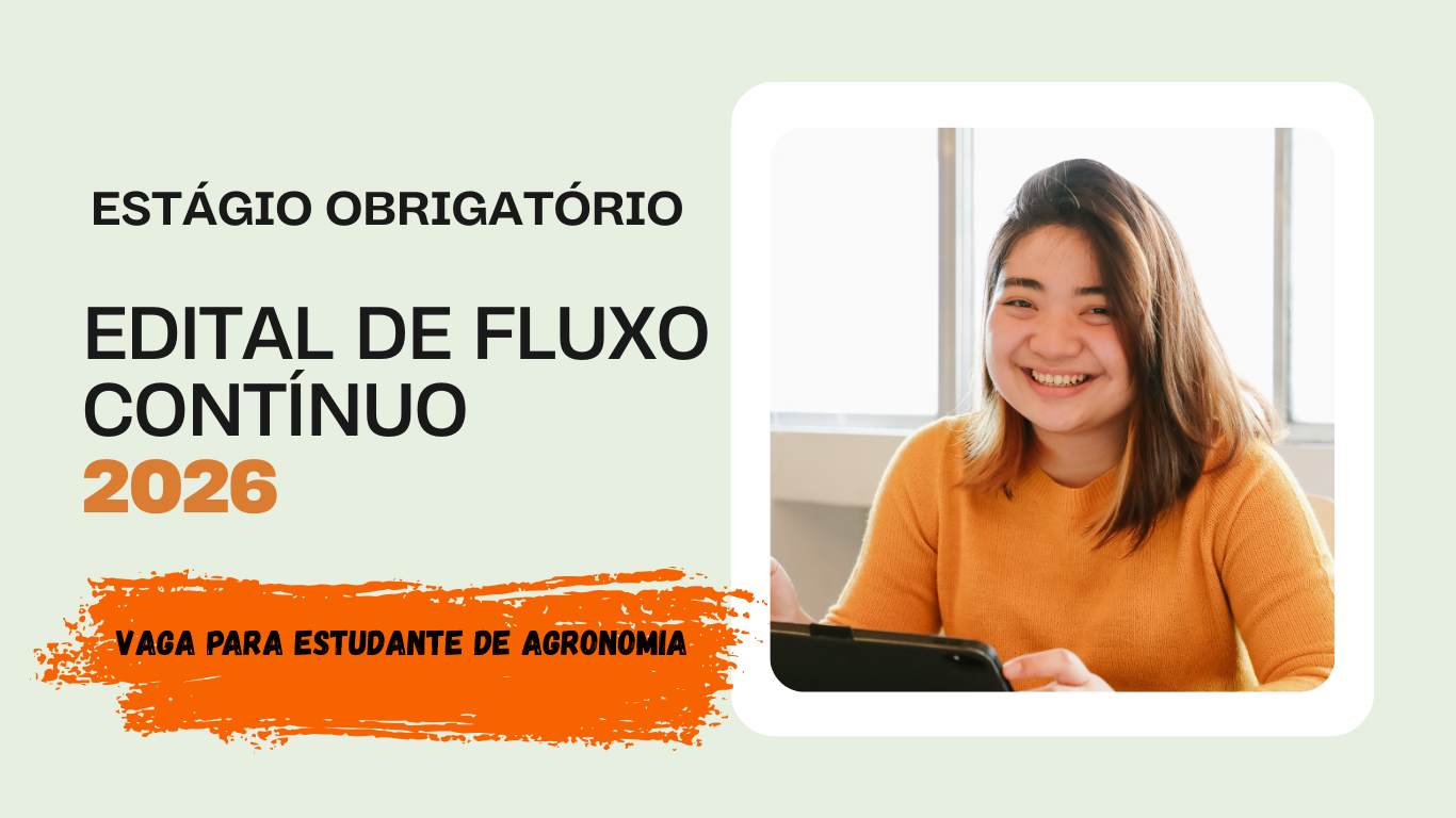 Vaga disponível para estudantes de Agronomia. Inscrições entre 30 de janeiro e 04 de fevereiro.