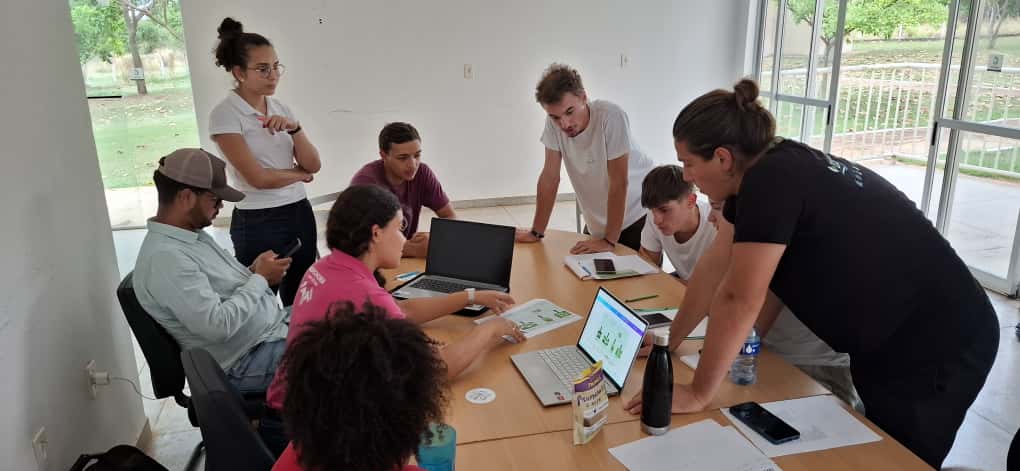 De 11 a 19 de outubro, os franceses estiveram no Campus Urutaí, a 168 quilômetros de Goiânia, onde participaram de diversas atividades para conhecer a evolução dos sistemas agrícolas para outros mais resistentes às mudanças climáticas. Sob a recepção do IF Goiano, os alunos Boyancé Maéva, Pauquet Nathan, Laforgue Yvon e Grégoire Ilan e a professora Magali Loupias fizeram diversas visitas técnicas a propriedades de referência em Urutaí e região para conhecer metodologias e resultados em áreas como agroecologia, ILPF (Integração Lavoura-Pecuária-Floresta), manejo de culturas comerciais em bases sustentáveis e cultura alimentar regional, além dos trabalhos da Instituição com bioinsumos.