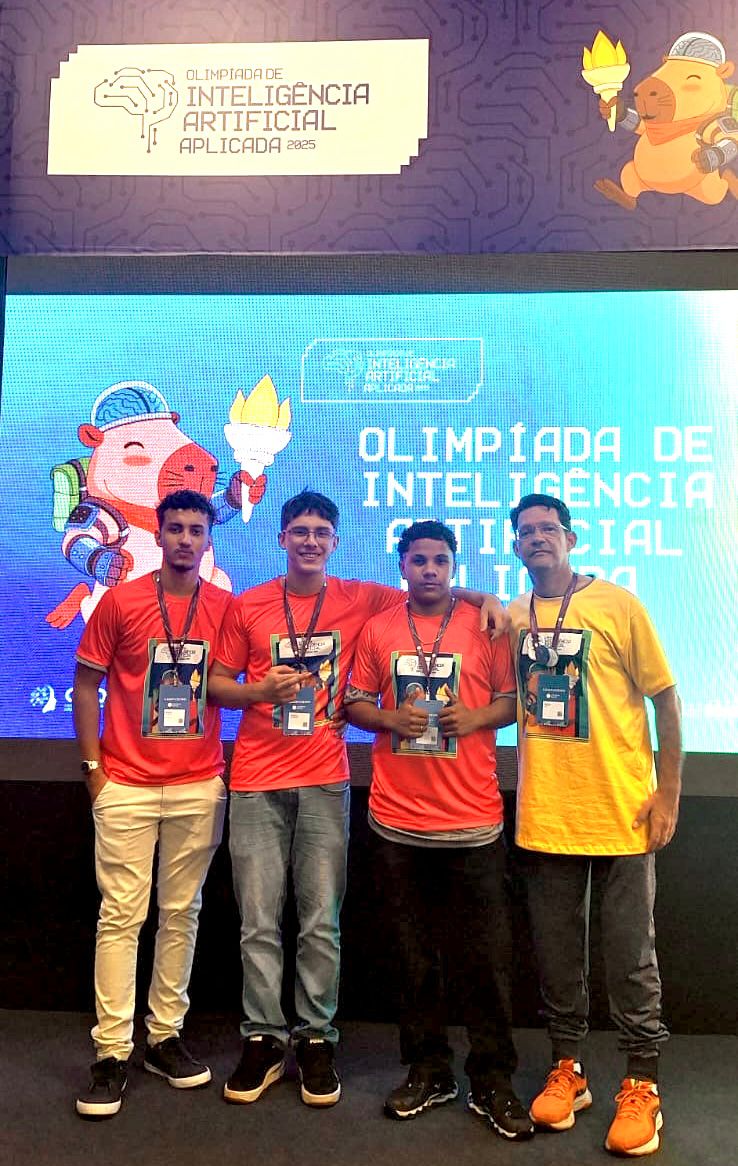 Os estudantes Bruno Silva Reis (1º ano), Moizes de Jesus Sousa (2º ano) e João Vitor Schönberger Gonçalves (3º ano), do Curso Técnico em Informática Integrado ao Ensino Médio do IF Goiano – Campus Cristalina, conquistaram o 2º lugar na Olimpíada de Inteligência Artificial Aplicada (OIAA), promovida pelo Centro de Excelência em Inteligência Artificial (CEIA) e pela Secretaria de Estado de Ciência, Tecnologia e Inovação (SECTI). A equipe, nomeada Cristal Neural, foi orientada pelo professor Angel Rodrigues Ferreira.