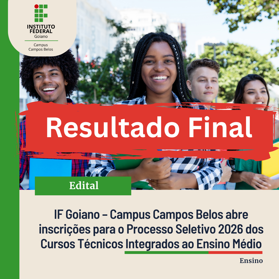 IF Goiano – Campus Campos Belos divulga o Resultado Final do Processo Seletivo 2026 para Cursos Técnicos Integrados ao Ensino Médio