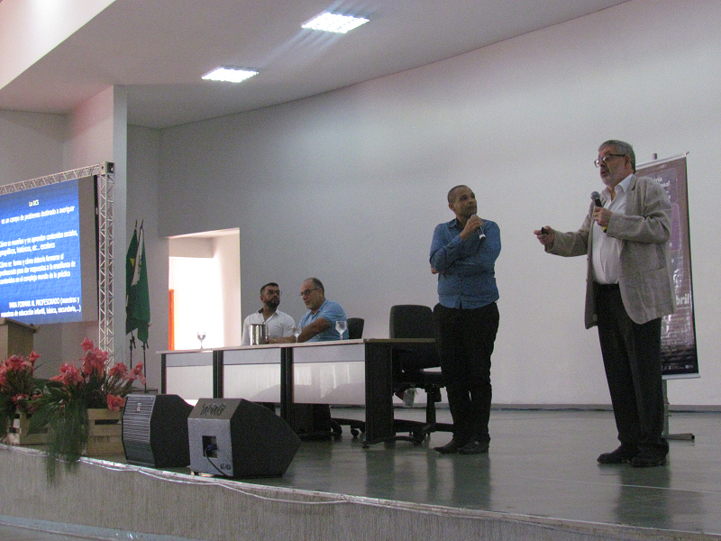 No período da tarde, o debate sobre a pesquisa na formação e prática docente reuniu os dois professores estrangeiros, Joan Pagés Blanch, da Universidade Autônoma de Barcelona (UAB) e José Augusto Pacheco, da Universidade do Minho de Portugal.