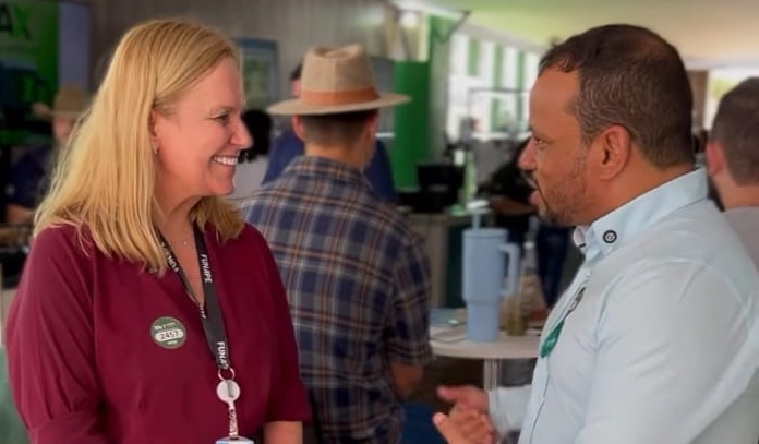 Além das tecnologias expostas, o estande também tem sido palco de importantes articulações institucionais. A Fundação de Apoio à Pesquisa (Funape), parceira estratégica na execução de projetos, esteve representada pela analista de projetos Ana Claudia.