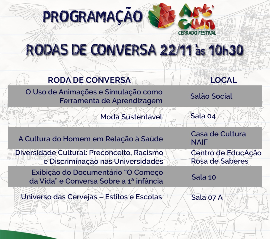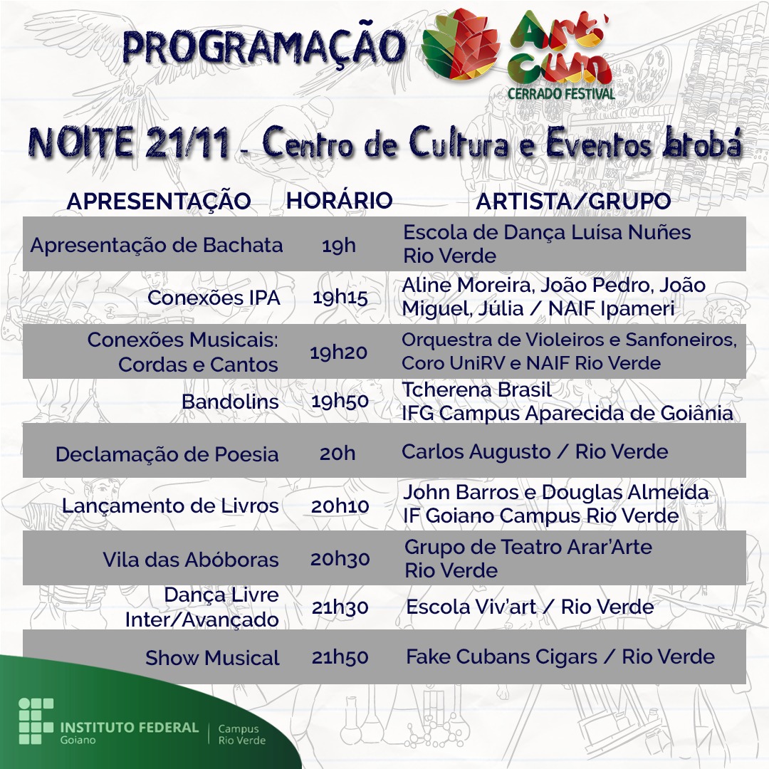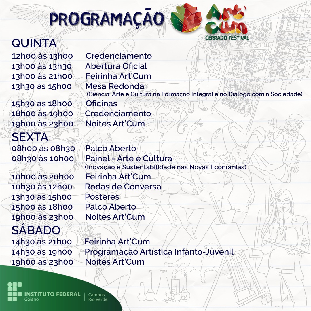 "Conexões" é o tema do festival que acontecerá entre os dias 21 e 23 de novembro. Para os três dias de evento estão programadas diversas atrações, como, shows musicais, espetáculos de dança, teatro, circo, além de oficinas, discussões temáticas acerca da Educação, Ciência, Arte e Cultura por meio de mesas redondas, feiras de artes e ciências, exposições, rodas de conversa e palco aberto.