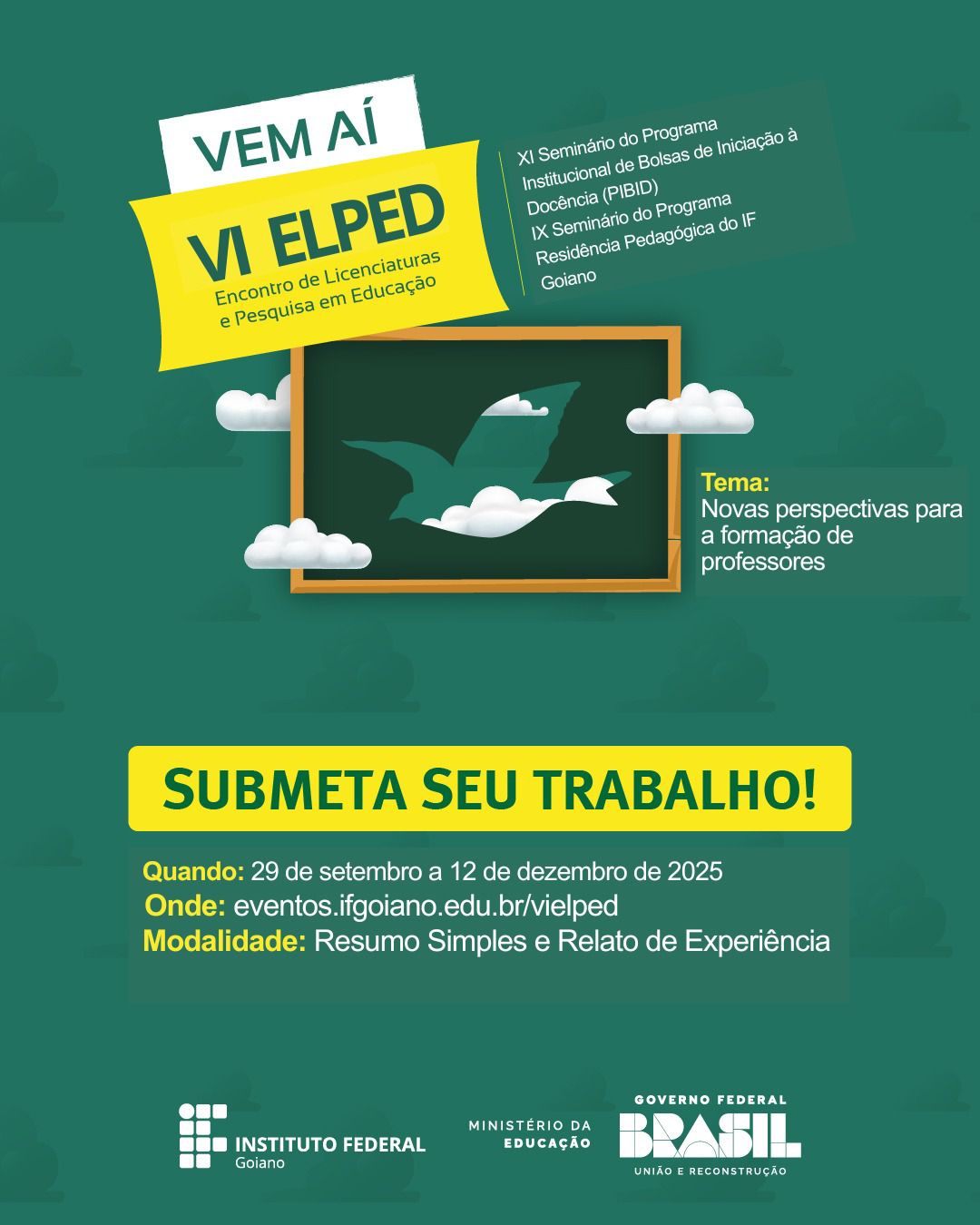 Inscrições abertas para submissão de trabalhos científicos no VI ELPED e XI Seminário PIBID