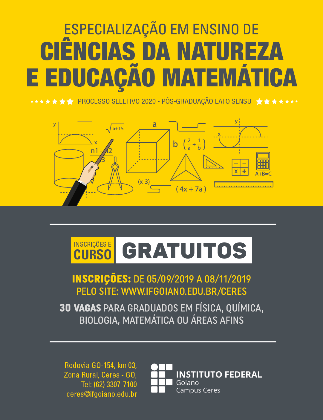 Público-alvo: Profissionais da Educação Básica, graduados em cursos reconhecidos pelo Ministério da Educação (MEC), principalmente docentes das Redes Públicas da Educação, licenciados ou bacharéis, e quanto docentes como técnicos administrativos em educação, interessados em conhecimentos e procedimentos teóricometodológicos voltados ao aprimoramento e ao desenvolvimento da Educação Básica.
