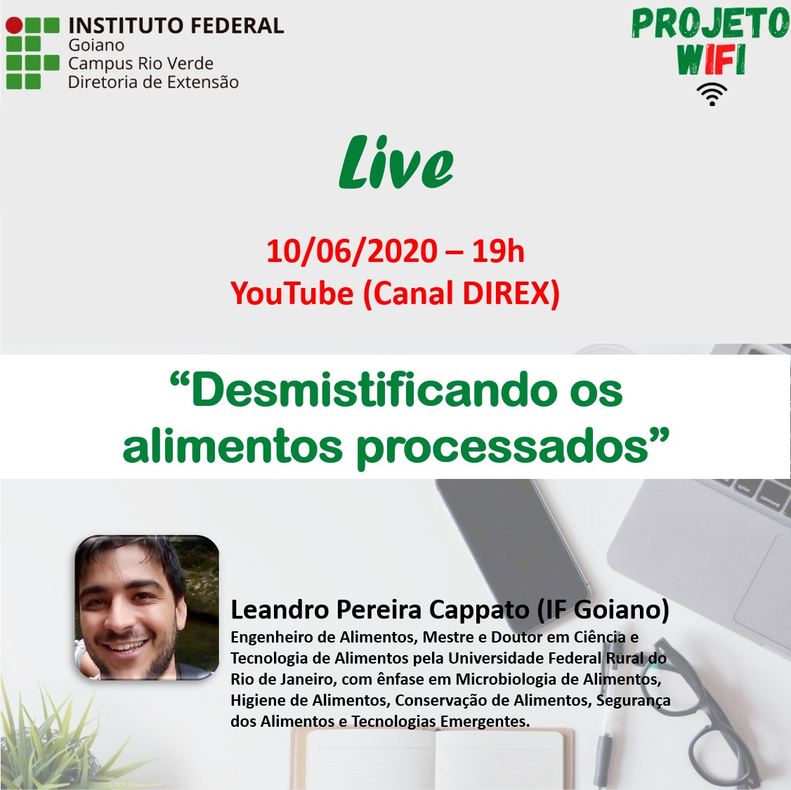 Live com participação do professor Leandro Cappato, mestre e doutor em Ciência e Tecnologia de Alimentos