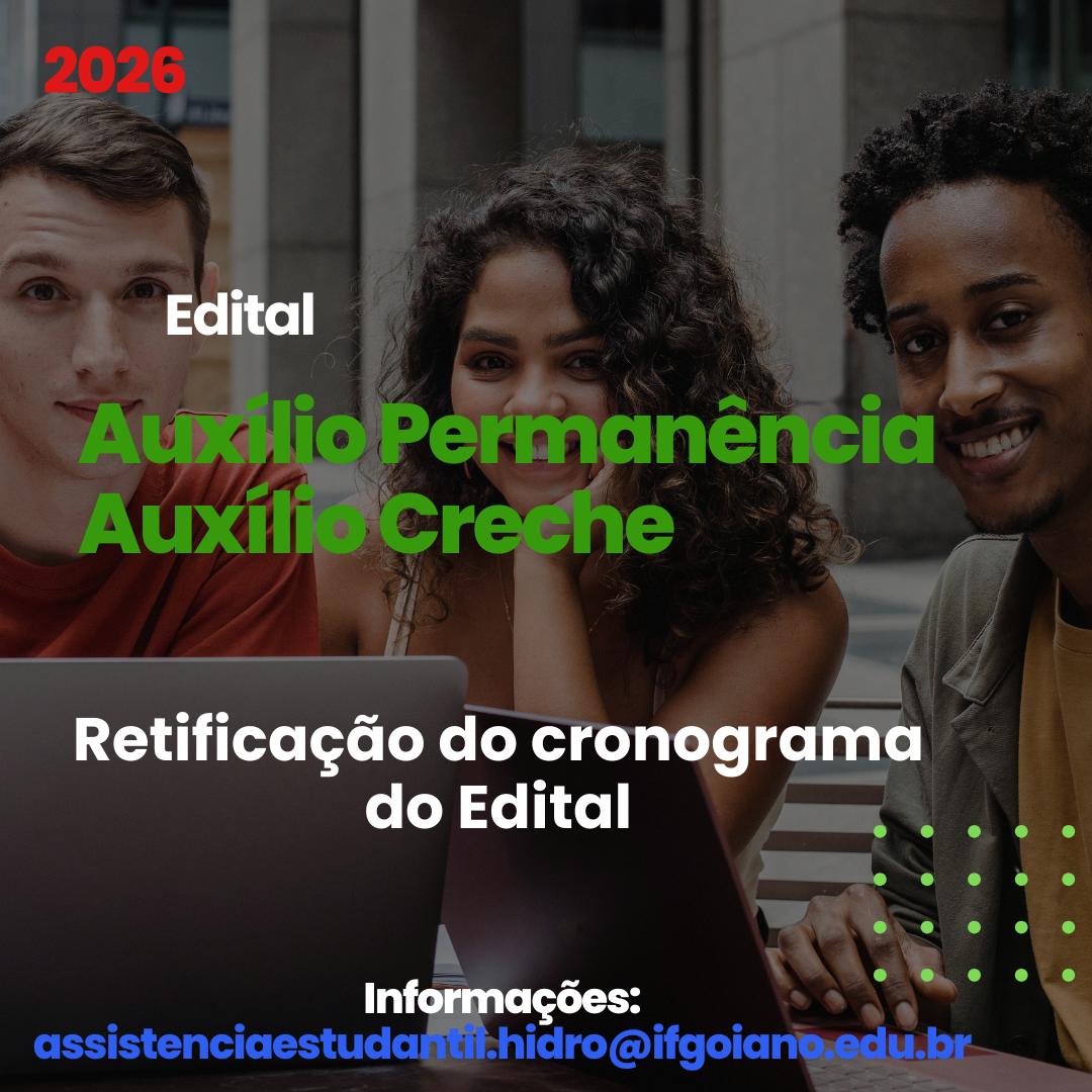 Publicada retificação do cronograma referente à oferta dos Programas de Assistência Estudantil do IF Goiano - Campus Hidrolândia.