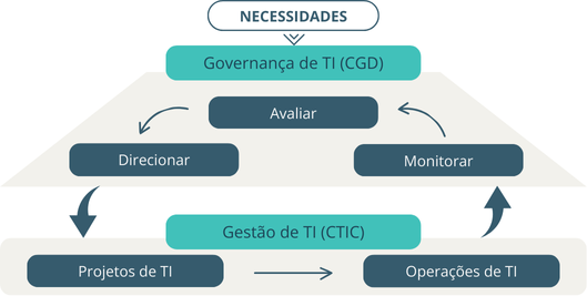 Já a Gestão de TI é o conjunto de ações de planejamento, execução e monitoramento das atividades de TI. Estas ações são alinhadas às estratégias definidas pela governança e tem a finalidade de alcançar os objetivos da área.