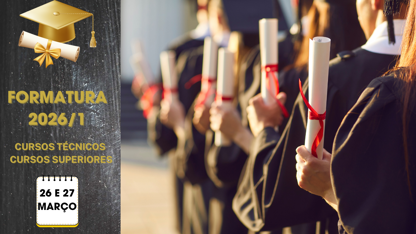 As solenidades de formatura ocorrerão nos dias 26 e 27 de março, a partir das 20h, no Auditório Jatobá.