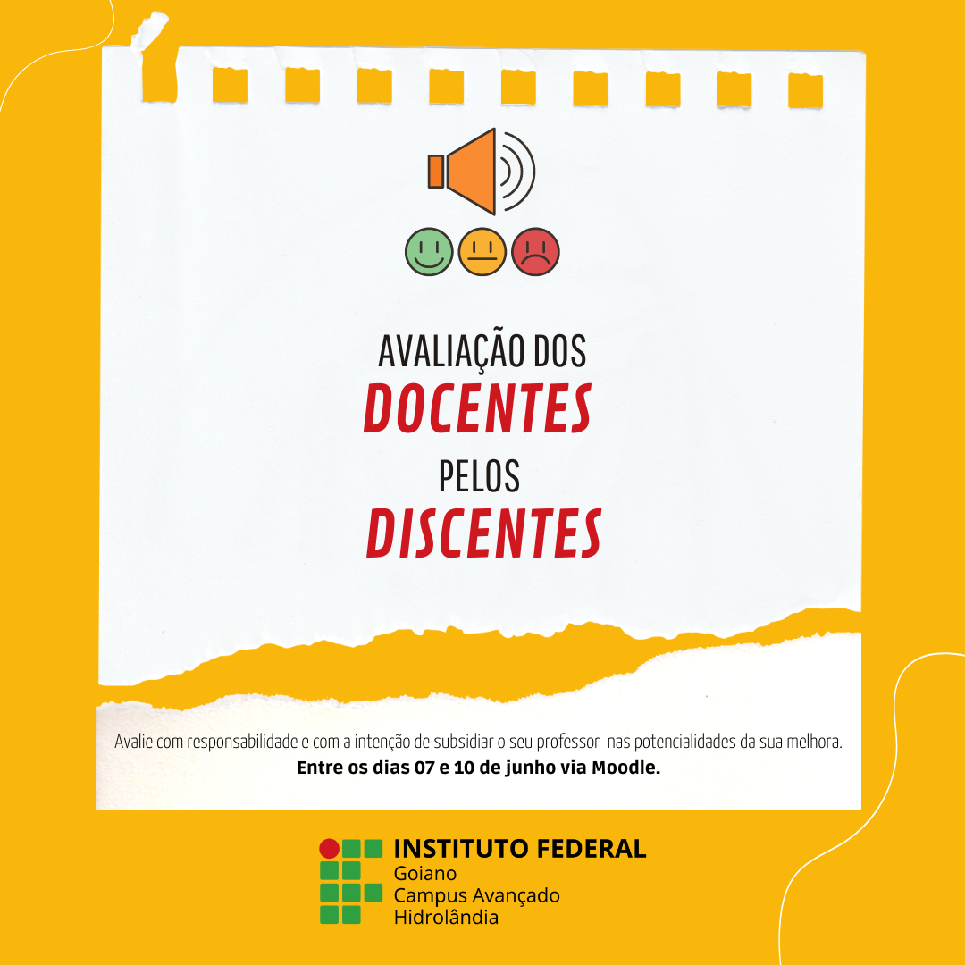 A avaliação dos docentes será feita pelos estudantes e ocorrerá no período de 07 a 10 de junho de 2022.