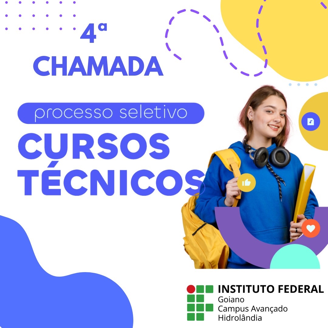 A Comissão Local de Processo Seletivo para ingresso aos Cursos Técnicos Integrados ao Ensino Médio do IF Goiano Campus Avançado Hidrolândia torna pública a quarta chamada...