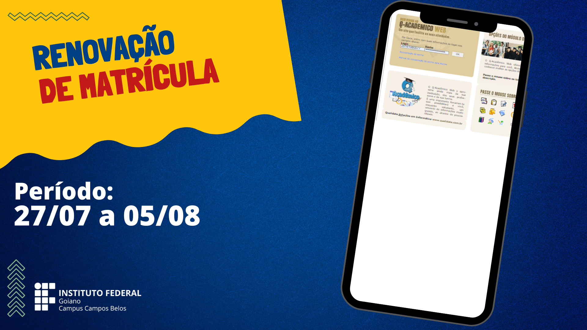 A renovação de matrícula para o ano de 2023/1 dos alunos veteranos dos cursos Técnicos Integrados do IF Goiano - Campus Campos Belos será realizada de forma automática pela...