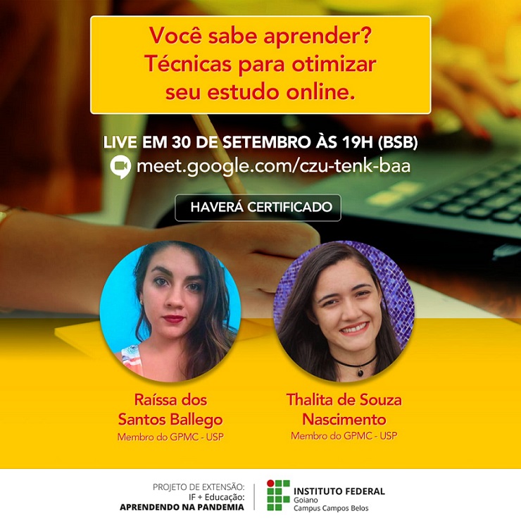 Acontece hoje live com o tema: "Você sabe estudar: Técnicas para otimizar seu estudo online"