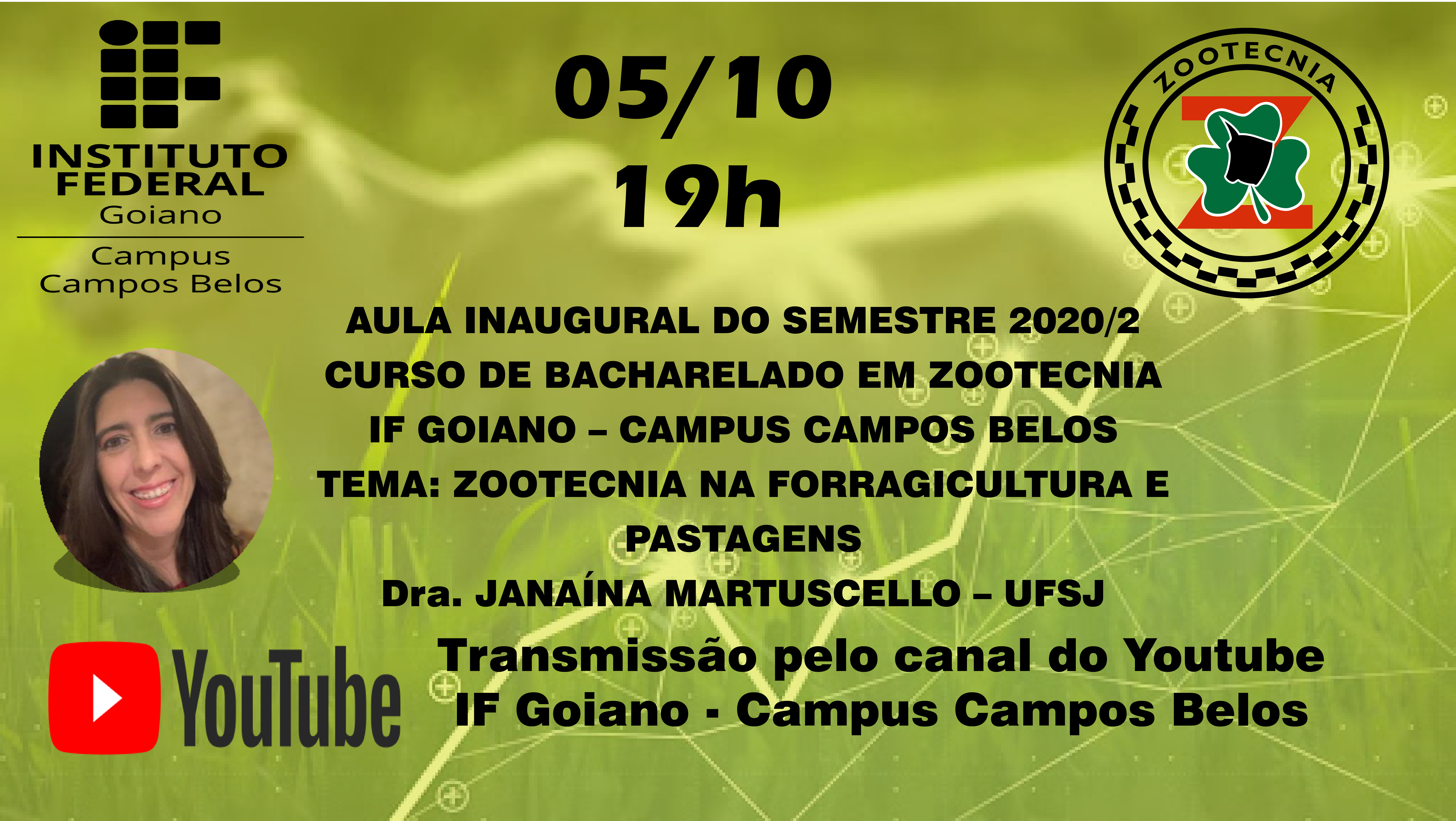 Comemoraremos o início do semestre letivo do Curso de Bacharelado em Zootecnia (IF Goiano Campus Campos Belos) 2020/2, no dia 05 de outubro de 2020 às 19:00 horas.