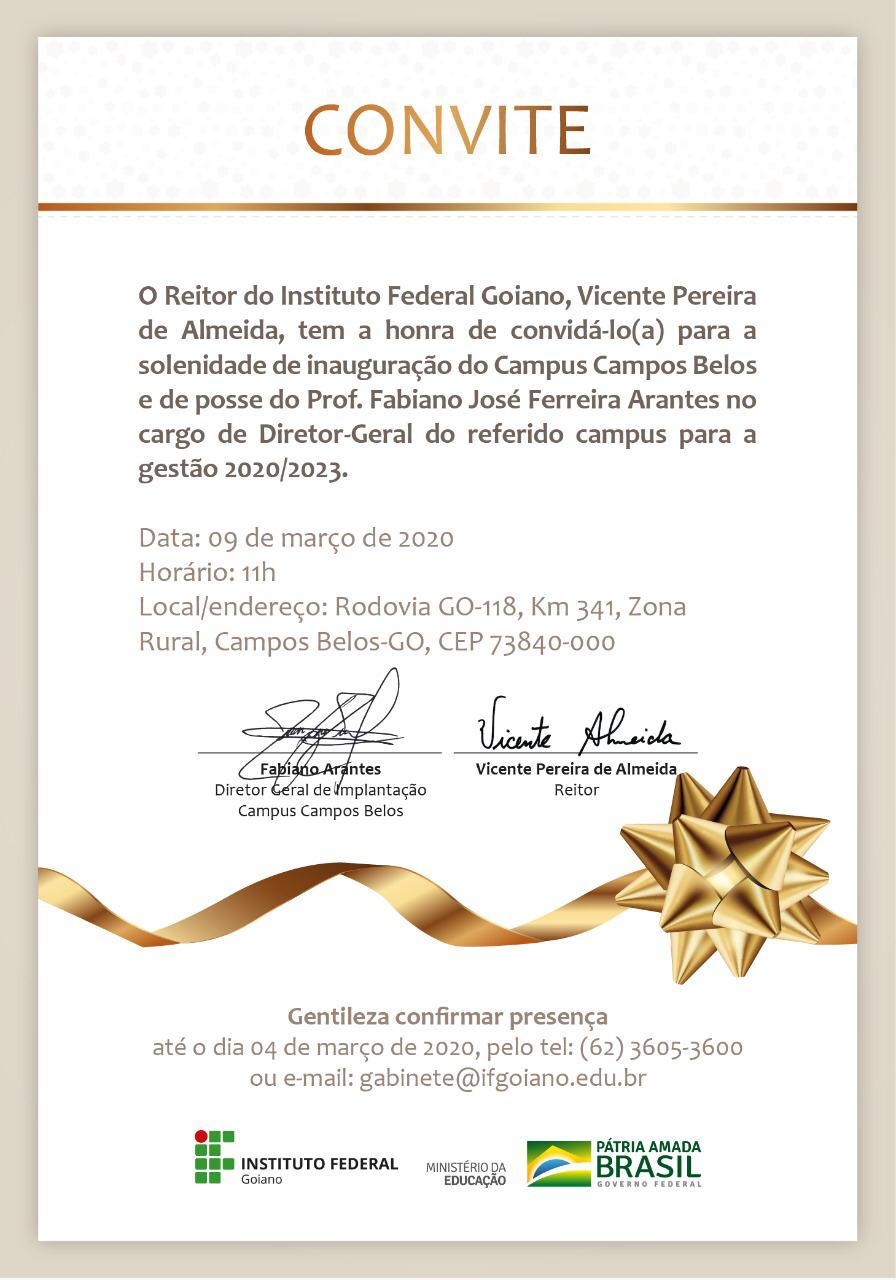 [CONVITE] Inauguração do IF Goiano - Campus Campos Belos ocorrerá no dia 09 de março