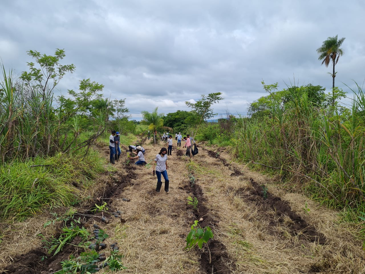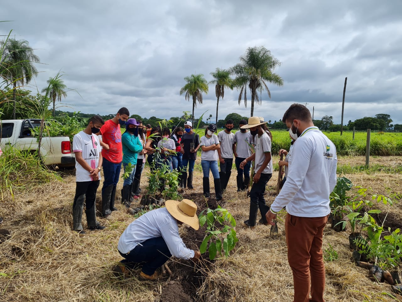 A ação de hoje foi realizada na Escola Fazenda do IF Goiano - Campus Campos Belos, com o plantio de 250 mudas nativas e fruteiras domésticas, no sistema agroflorestal (SAFs), implantado na nascente do Ribeirão Gameleira.