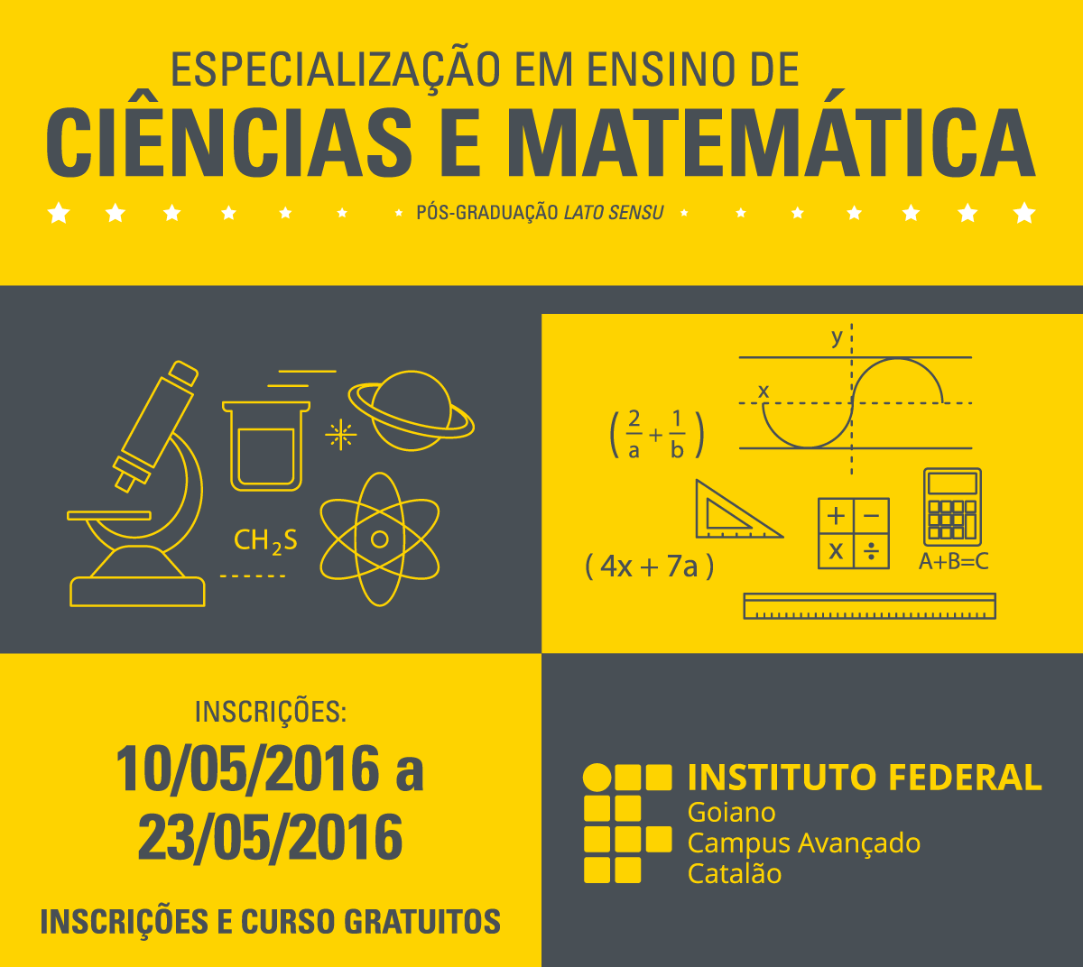 As inscrições podem ser feitas no período de 10 a 23 de maio, na Secretaria de Pesquisa e Pós-graduação do IF Goiano - Campus Avançado Catalão, nos horários de 13h às 16h e de...