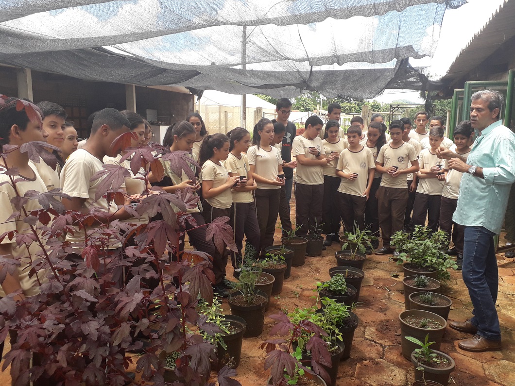 Na visita ocorrida nesta terça-feira, os discentes conheceram a horta do Campus Ceres, com enfoque nas plantas medicinais aqui cultivadas, entre elas a Quebra Pedra, Azedinha, Gengibre, Jambu, Boldo, Grama de Trigo, Erva Cidreira, Hortelã e Capim Citronela. Indo além da proposta, aos extensionistas também foi apresentada a variedade de pimentas cultivadas e participaram de atividade de plantio de sementes de berinjela, que vem sendo utilizada no tratamento de colesterol e diabetes. “Os estudantes na ocasião levaram um ‘vasinho’, no qual poderão cultivar de forma adequada a hortaliça em seus lares”, concluiu Marques.
