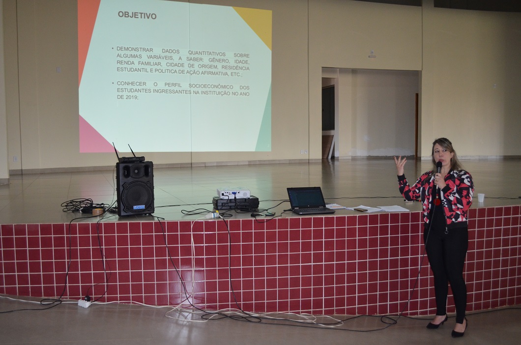 Além das falas dos gestores, o momento também contemplou a apresentação de dados sobre o perfil de nossos estudantes, inclusive dos ingressantes de 2019, quanto a situação socioeconômica, pertencimento étnico e divisão por gênero. Os dados foram trazidos pela assistente social da unidade, Cláudia Barros, em um estudo preliminar.