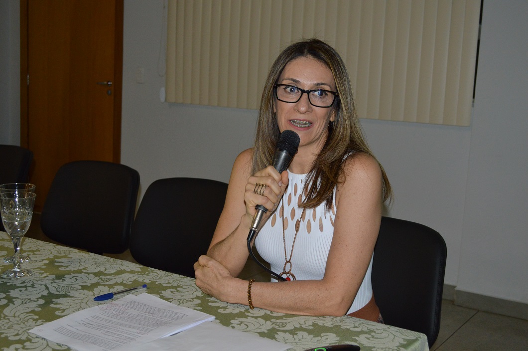A professora Léia Santiago, palestrante convidada da aula inaugural da especialização