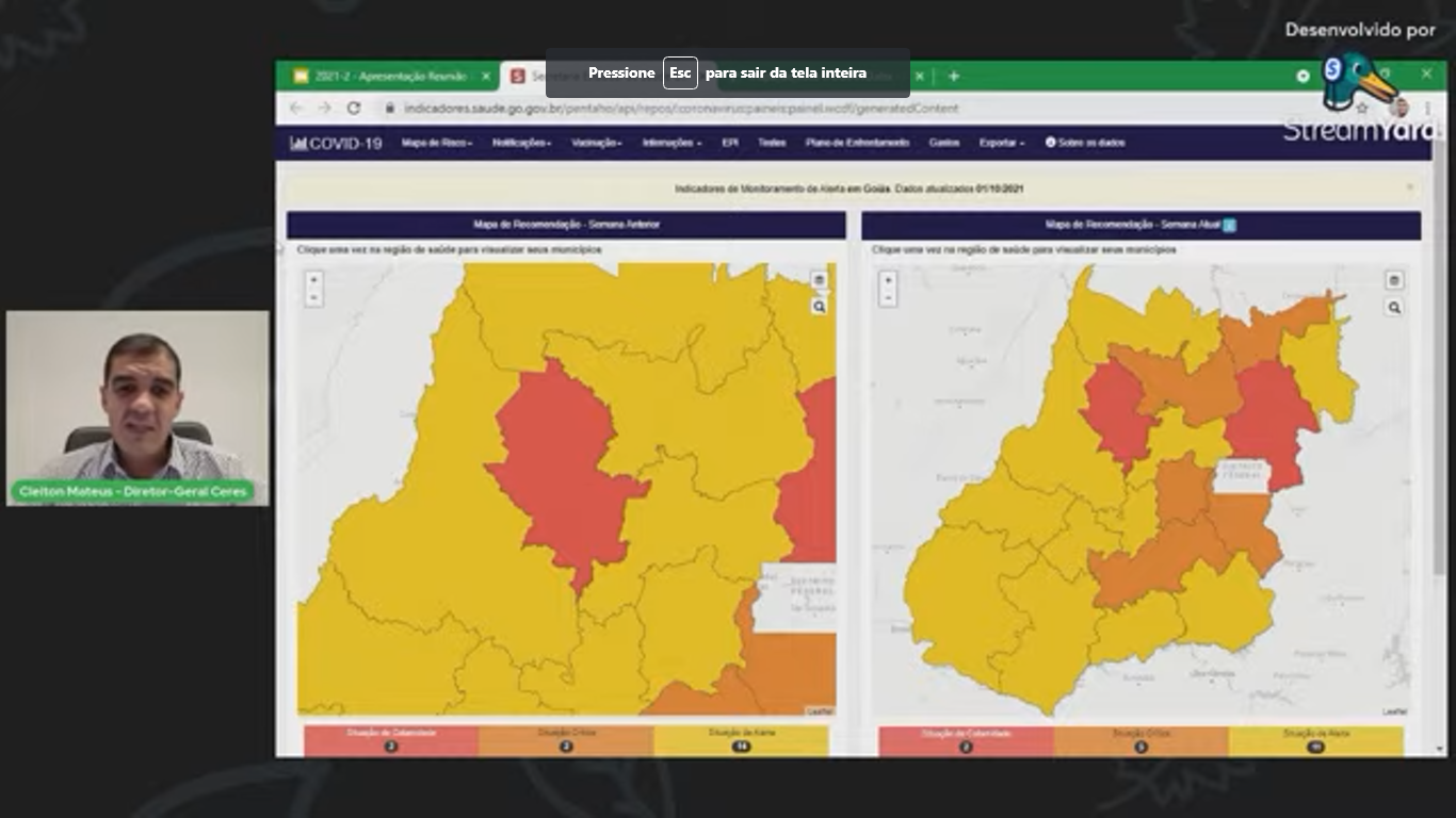 Situação da região de Ceres em relação ao Covid-19, segundo dados da Saúde de Goiás, em apresentação do diretor-geral, Cleiton Mateus
