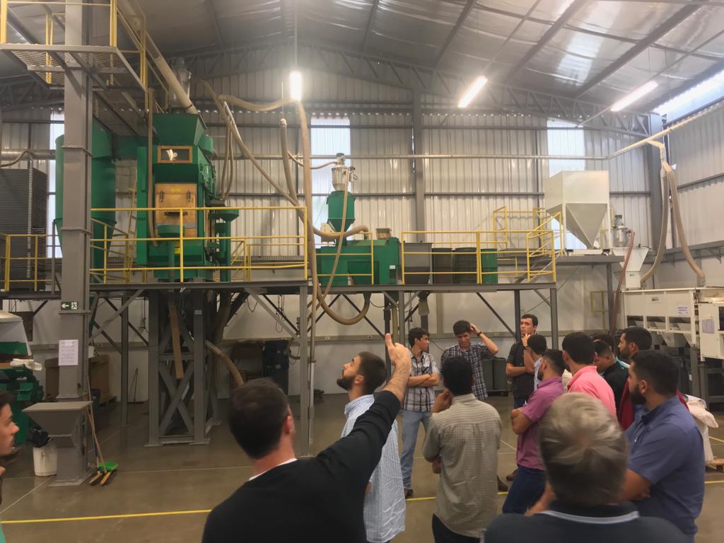 Na Agristar, discentes acompanham conheceram equipamentos como os classificadores de sementes, na imagem acima, elevadores e transportadores pneumáticos e máquinas de pré-limpeza