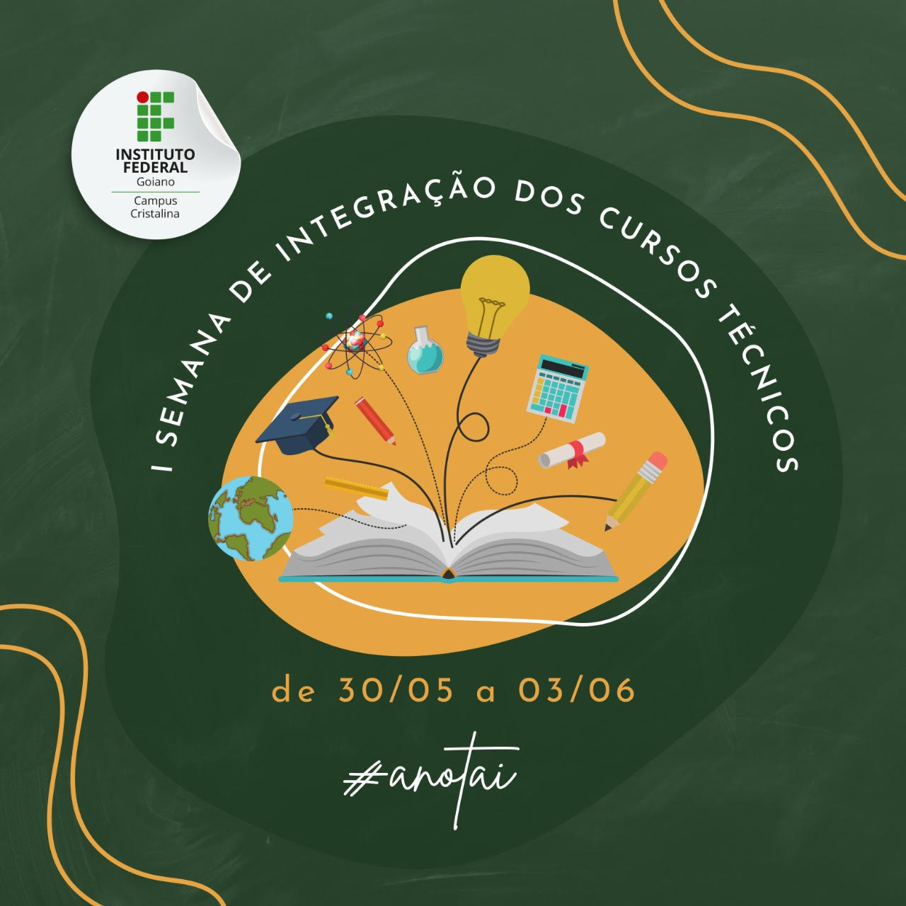 O Instituto Federal Goiano Campus Cristalina promoverá do dia 30/05 a 03/06 a 1ª Semana de Integração dos Curso Técnicos Integrados.