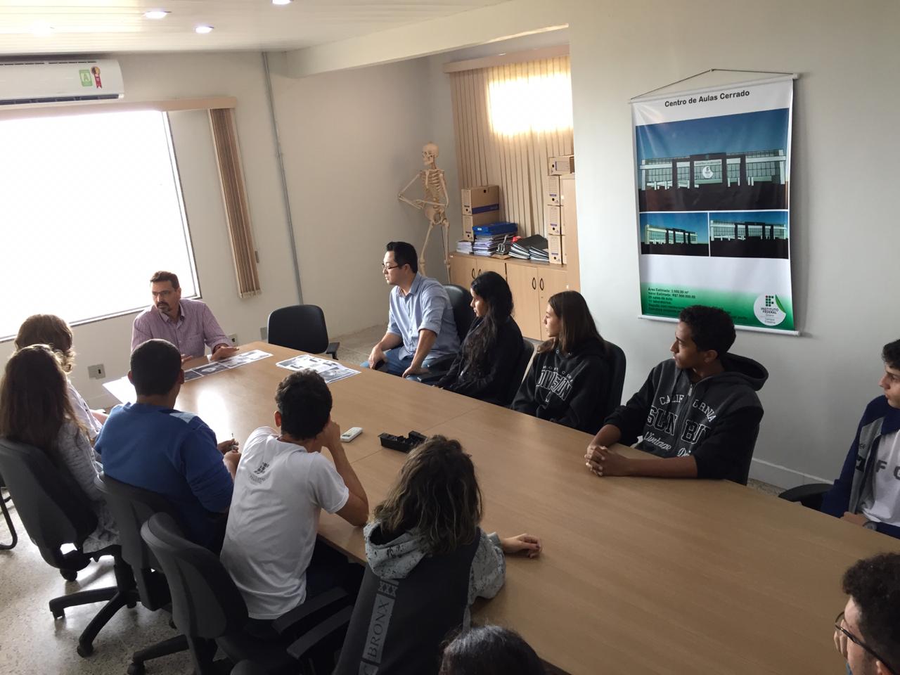 O Diretor-Geral, Prof. Eduardo Vasconcelos, o Diretor de Ensino, Prof. Carlos Fugita e o Diretor de Administração, Fernando Augusto, se reuniram na tarde de hoje, 18, com todos os representantes das turmas para discutirem sobre os seguintes assuntos: