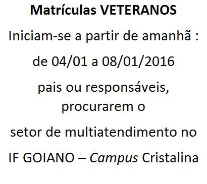 Se você é aluno do IF Goiano - Cristalina acompanhe o período de renovação de matrículas. Não deixe para a última hora!