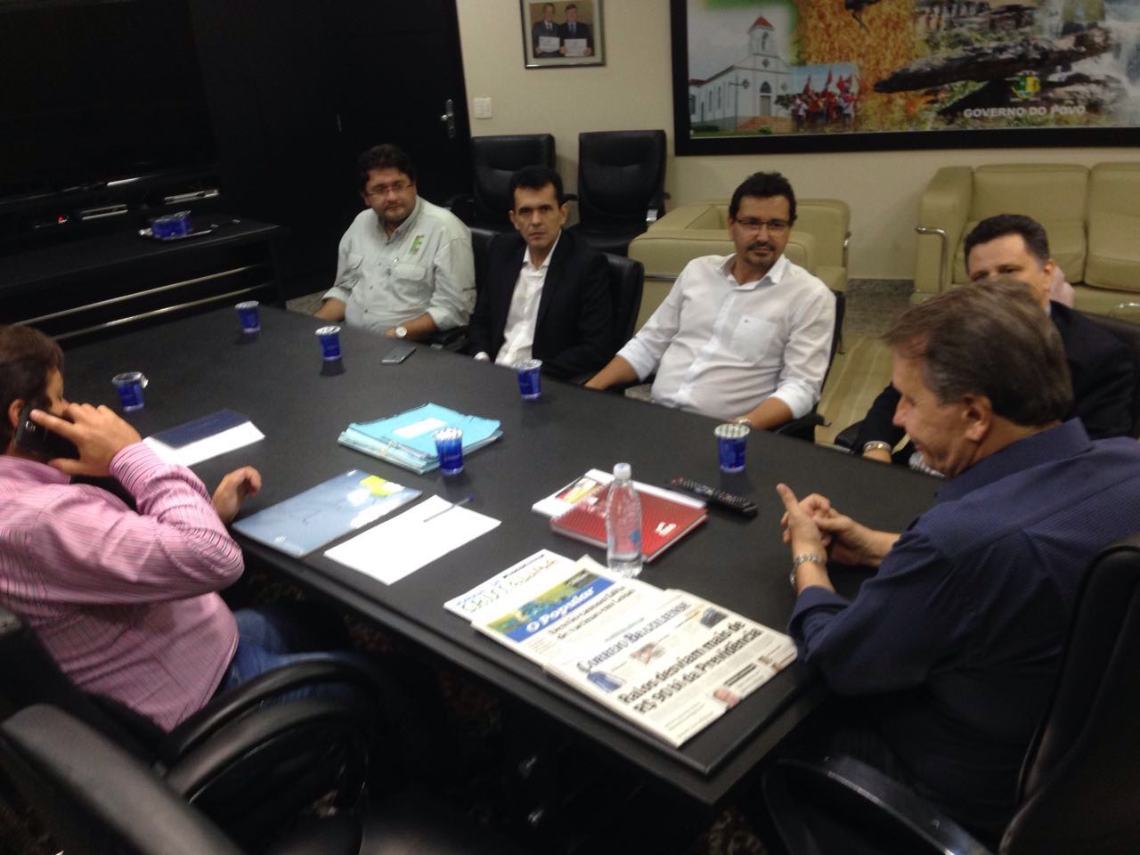 O Reitor do IF Goiano Prof. Vicente Pereira de Almeida, o Pró Reitor de Desenvolvimento Institucional, Elias de Pádua, o Diretor do Campus Avançado Cristalina, Eduardo Vasconcelos, o Coordenador Geral do Campus Avançado Cristalina Fernando Augusto e o Prefeito Municipal de Cristalina Luiz Attie se reuniram no dia de hoje com vistas à complementação da doação de áreas para consolidação e ampliação do Campus Avançado Cristalina.