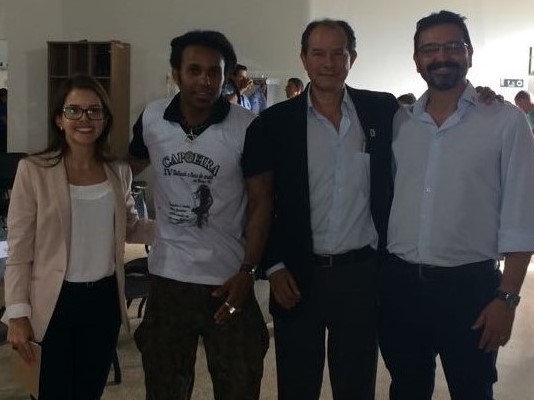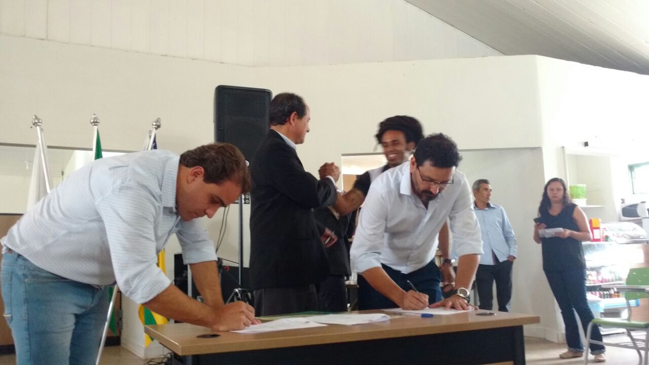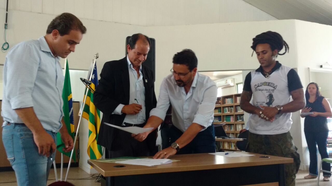 O Termo de Cooperação Técnica entre o IF Goiano Campus Avançado Cristalina e a SUB – SEDE do Centro Cultural e Social Grito de Liberdade – Mestre Cobra, foi assinado na tarde de ontem, 6, pelo Diretor do Campus Avançado Cristalina, Eduardo Vasconcelos e o Presidente da SUB – SEDE, Anderson Pereira de Souza, em evento realizado no IF Goiano Campus Avançado Cristalina. Ao realizar a abertura da celebração, o Diretor Eduardo, explanou sobre os objetivos e compromissos estabelecidos na parceria que se inicia com a realização de um curso de formação inicial continuada, promovendo uma complementação de valores éticos, morais e de cidadania. A solenidade contou com a presença e os discursos do Pró-Reitor do IF Goiano, Sebastião Nunes da Rosa Filho e do Prefeito de Cristalina, Daniel Sabino Vaz, ambos parabenizaram a parceria que promoverá ações de valorização da cultura no Instituto em conjunto com a comunidade de Cristalina. A Diretora de Extensão Suelen Maia, também ressaltou a importância da parceria para o incentivo da arte e a cultura com os alunos do Campus e a comunidade externa. Além das autoridades mencionadas, alunos, servidores e colaboradores do Campus estiveram presentes no evento.