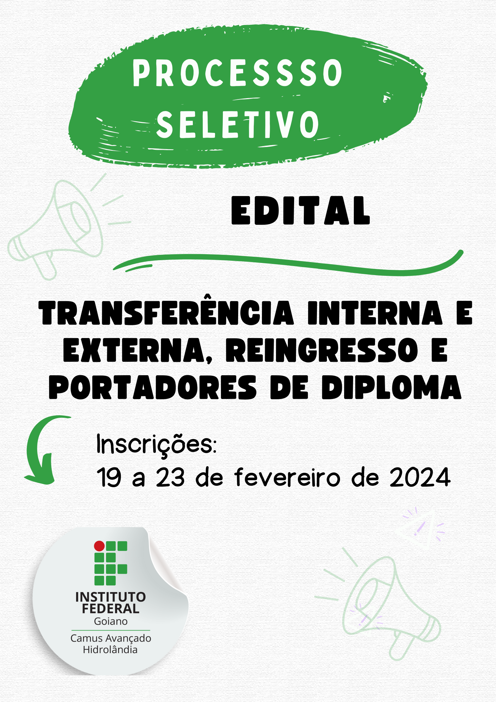 Ofertas são para os Campi Campos Belos, Cristalina, Hidrolândia, Ipameri, Morrinhos, Posse, Trindade e Urutaí. Interessados devem se inscrever no período de 24 a 27 de...