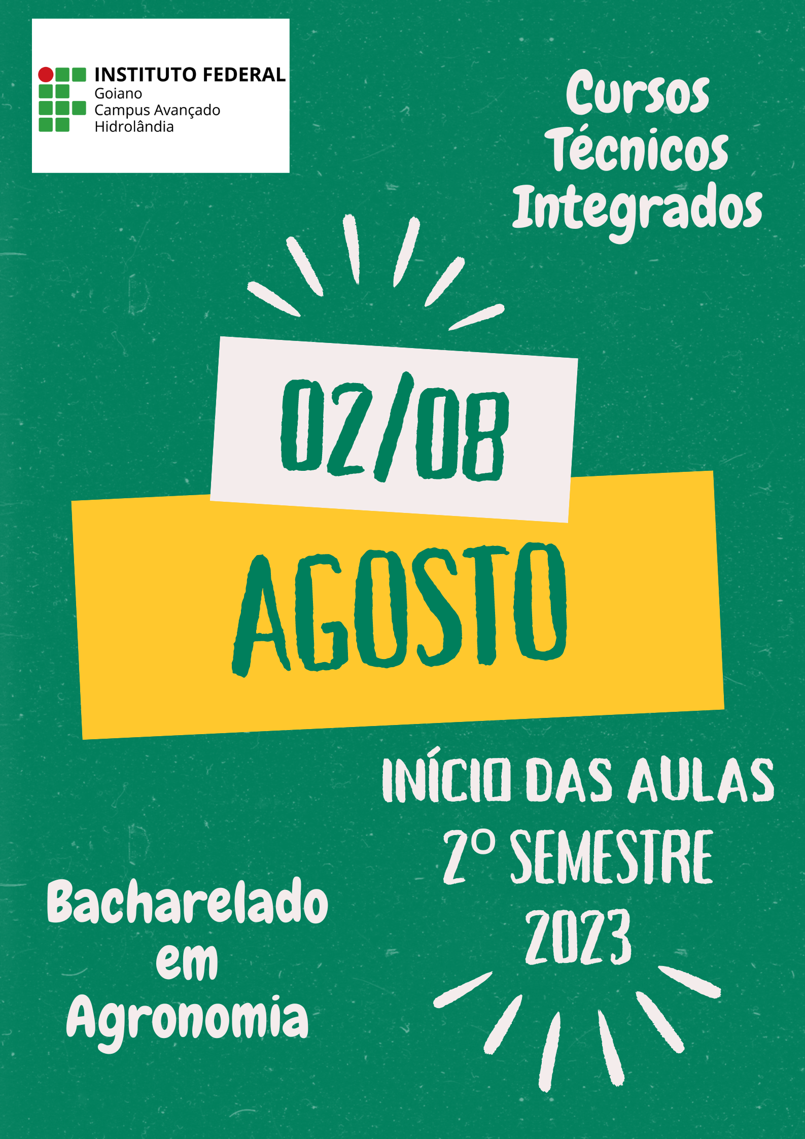A Direção-Geral do IF Goiano Campus Avançado Hidrolândia informa a comunidade escolar que as aulas retornarão no dia 02 de agosto, quarta-feira, para iniciar o segundo semestre letivo...