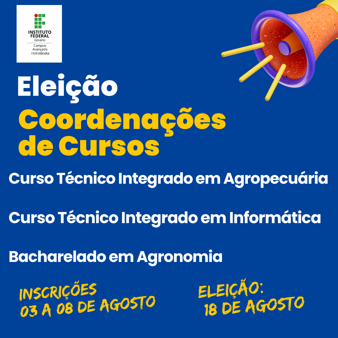 O Diretor-Geral Substituto torna público o edital do processo eleitoral para escolha dos Coordenadores(as) de Cursos do IF Goiano – Campus Avançado Hidrolândia. As inscrições...