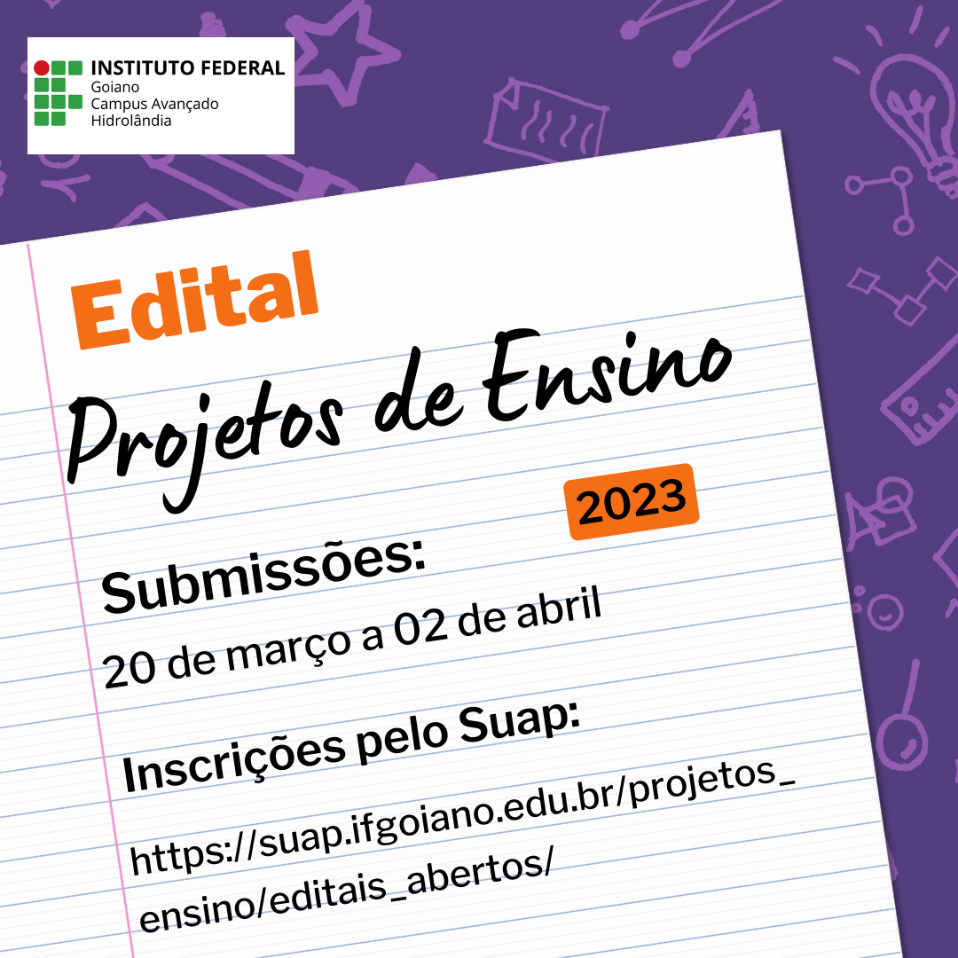 O Comitê de Ensino do IF Goiano Campus Avançado Hidrolândia torna público o edital nº 05/2023 referente à submissão de projetos de ensino a serem desenvolvidos no ano letivo de...