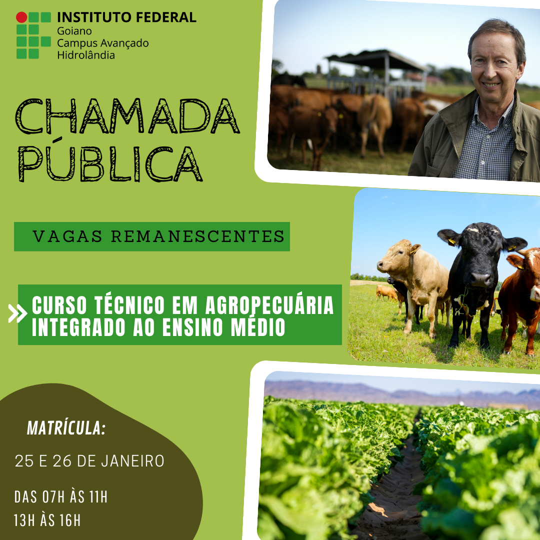 Publicado o Edital nº 02/2023 referente à Chamada Pública de Vagas Remanescentes para o Curso Técnico em Agropecuária Integrado ao Ensino Médio do IF Goiano Campus Avançado...
