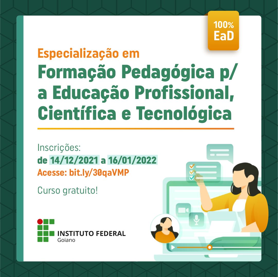 Especialização em Formação Pedagógica na Educação Profissional, Científica e Tecnológica, na modalidade à distância, é destinada a servidores do IF Goiano e público externo....