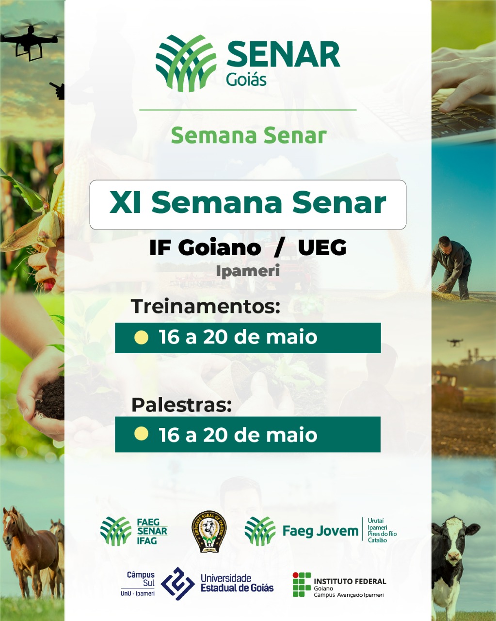 Entre os dias 16 e 20 de maio, deste ano, aconteceu a Semana Senar Ipameri com parceria entre UEG (Universidade Estadual de Goiás) – Unidade Ipameri, Senar Goiás (Sistema Nacional de...