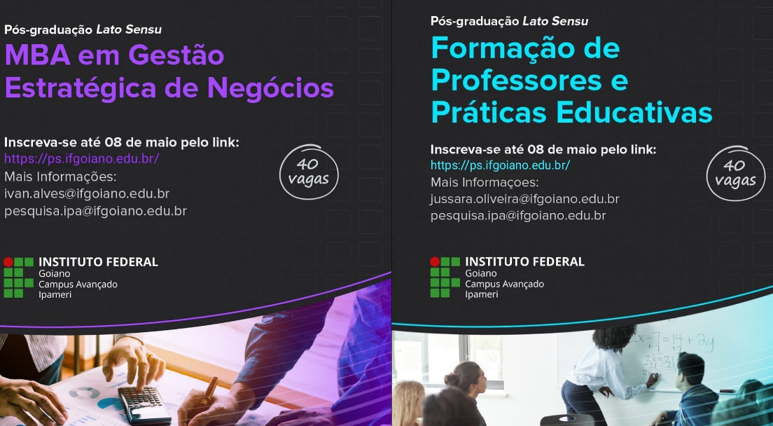 Seleção é para MBA em Gestão Estratégica de Negócios e Formação de Professores e Práticas Educativas. Inscrições deverão ser feitas no período de 19 de abril a 8 de maio.