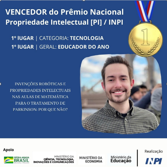 Professor Greiton Toledo de Azevedo recebeu a premiação na Categoria Tecnologia e na Categoria Geral (Educador de PI do ANO)